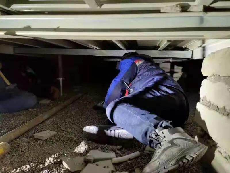في ليلة باردة في الهواء الطلق بدرجة حرارة أقل من عشر درجات ، استلقى موظفو أمن مجموعة المكتب العام رقم 1 في CCCC على الأرض الباردة لتركيب غرفة شمع معززة ، وبعد العمل طوال الليل ، كانت عيونهم حمراء ومغطاة بالثلوج والتربة.