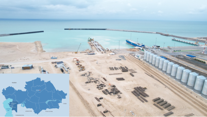 تم تشغيل الميناء ، الواقع في منطقة Mangistau على الساحل الشرقي لبحر قزوين ، في عام 2017 بعد عامين من البناء. سيكون الآن أحد المساهمين الرئيسيين في تطوير TITR ، المعروف أيضًا باسم الممر الأوسط ، وهو طريق يمر عبر الصين وكازاخستان وبحر قزوين وأذربيجان وجورجيا وتركيا وإلى الدول الأوروبية.