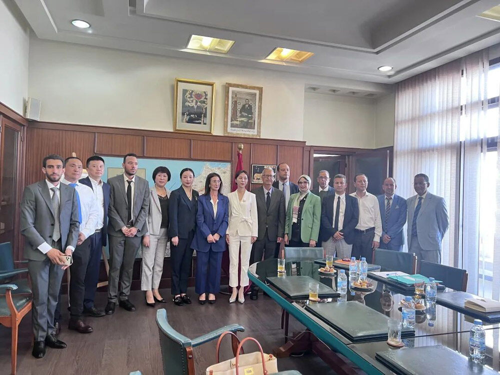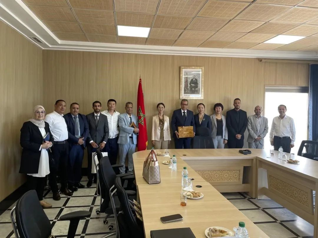 أمينة بن خدرة ، مدير إدارة الدولة للتعدين والهيدروكربونات في المغرب ( يسار 7 ) محادثات مع تشانغ جيا لينغ ( يسار 6 ) و صور