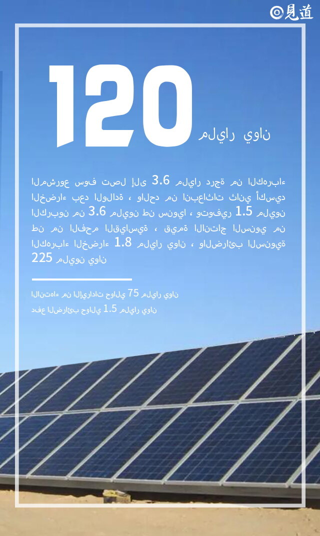 ومن المعلوم أن المشروع يعتزم الانتهاء من تركيب طاقة طاقة جديدة تبلغ 3 جيغاواط على مراحل، ويشمل بناء محطات تجارية فولطاضوئية، ومحطة طاقة الرياح الموزعة، ومحطة فولطاضوئية ضوئية على الطرق، ومصابيح فولطاضوئية ضوئية، وقرية كاملة، ومحطة طاقة هوائية مركزية، ومحطة تخزين، ومحطة شحن، ومشروع طاقة هيدروجينية، وما إلى ذلك. ويصل المشروع إلى توليد 3.6 بلايين درجة من الكهرباء سنويا بعد الولادة، ويقلل من انبعاثات ثاني أكسيد الكربون بمقدار 3.6 ملايين طن سنويا، ويوفّر 1.5 مليون طن من الفحم، وينتج 1.8 بليون يوان سنويا، ويفرض ضرائب قدرها 225 مليون يوان سنويا. وتعتزم شركة المشروع ورابطة الدول الأعضاء تحصيل ما يقرب من 75 بليون يوان ودفع ما يقرب من 1.5 بليون يوان خلال فترة العقد.