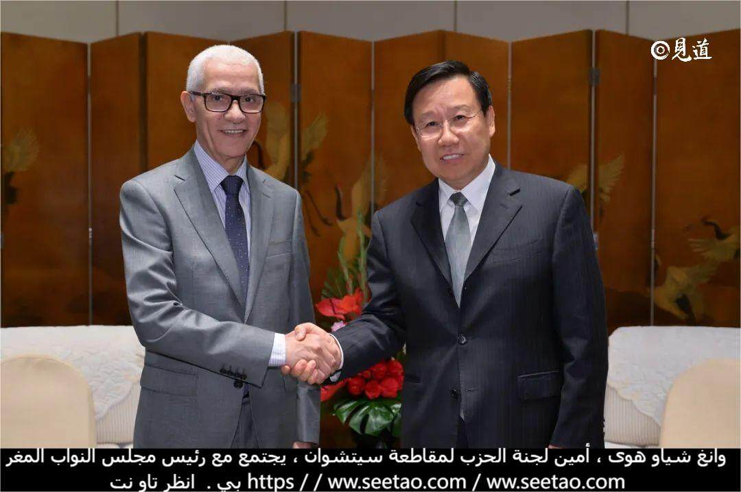 وفي 12 أيار / مايو ، وانغ شياو هوى ، أمين لجنة الحزب في مقاطعة سيتشوان ، رئيس اللجنة الدائمة للمجلس الوطنى لنواب الشعب الصينى ، اجتمع مع وفد برئاسة رئيس مجلس النواب المغربي علي علامي في تشنغدو .