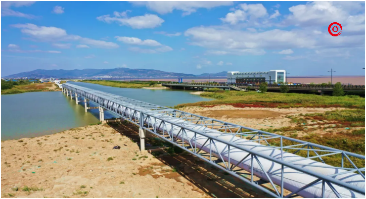 ولا يمر المشروع في مرحلة البناء عبر تضاريس معقدة فحسب، بل يمتد عبر منطقة بحرية واحدة وتسعة أنهار و 22 طريقا. وللتغلب على هذه التحديات الجغرافية والتقنية، أُقيم ما مجموعه ٥٦٠, ٢ مترا من السقوف. ومن بين هذه القوائم، يبلغ طول قوائم نهر وي وي وي ٢٩٠ مترا، مما يدل على قدرة كبيرة على تخطي. بالاضافة الى ذلك، تُعدّ قوائم الطريق الرئيسية ٨٥ مترا، ويبلغ صافي ارتفاعها ٢٤ مترا، مما يضمن سلاسة السير وسلامة خطوط الأنابيب. اما عند البوابة الرئيسية، فيُنصَّب المشروع ايضا منصة لعبور البحر يبلغ طولها ٣٤٣ مترا تقريبا، ويبلغ صافي ارتفاعها نحو ١٣ مترا، ويلبي بفعالية الحاجة الى الملاحة في البحر.