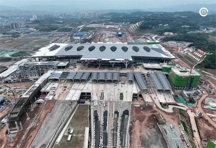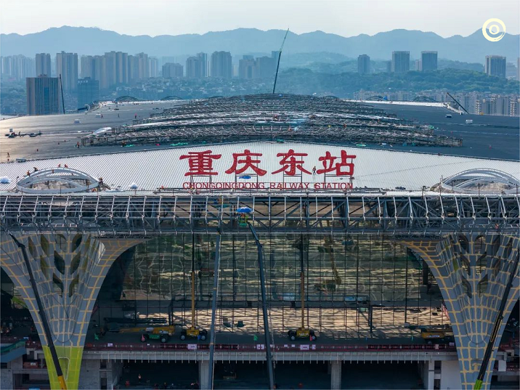 في الوقت الحاضر، تم الانتهاء من الهيكل الرئيسي لمبنى المحطة ومشروع السقف المعدني لمحطة سكة حديد شرق تشونغتشينغ، وتم تركيب أكثر من نصف زجاج الحائط الساتر في الطوابق المرتفعة يتواجد العمال في الموقع لتركيب المناور الزجاجية على السقف، والجدران الساترة، والمعدات الميكانيكية والكهربائية، وما إلى ذلك.