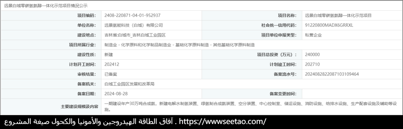 28 آب / أغسطس 2024 ، مقاطعة جيلين المشاريع الاستثمارية على الانترنت منصة الفحص والموافقة على إصدار الأخبار أن احتمال بايتشنغ صفر الهيدروكربونات والأمونيا والكحول التكامل المشروع التجريبي قد أنجزت بنجاح . هذا المشروع من منظور تكنولوجيا الطاقة الهيدروجينية ( بايتشنغ ) المحدودة هي المسؤولة عن تنفيذ بايتشنغ المدينة في مجال صناعة الطاقة الهيدروجينية قد اتخذت خطوة هامة .
