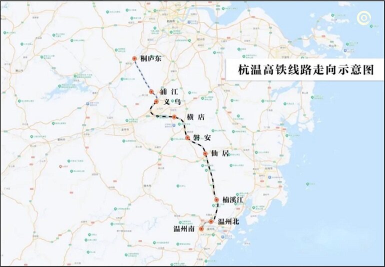 سكة حديد هانغتشو - ونتشو عالية السرعة ، وهي سكة حديد حديثة يبلغ طولها الإجمالي حوالي 276 كيلومترا وسرعة تصميم تصل إلى 350 كيلومترا في الساعة ، تبدأ من محطة سكة حديد هانغتشو تونغلو الشرقية ، وتمر عبر مدينة جينهوا ومدينة تايتشو ، وتصل أخيرا إلى محطة سكة حديد ونتشو الشمالية ، وتمتد إلى محطة سكة حديد ونتشو الجنوبية عبر سكة حديد هانغتشو وشنتشن ، وبناء قناة سريعة عبر جنوب شرق تشجيانغ.