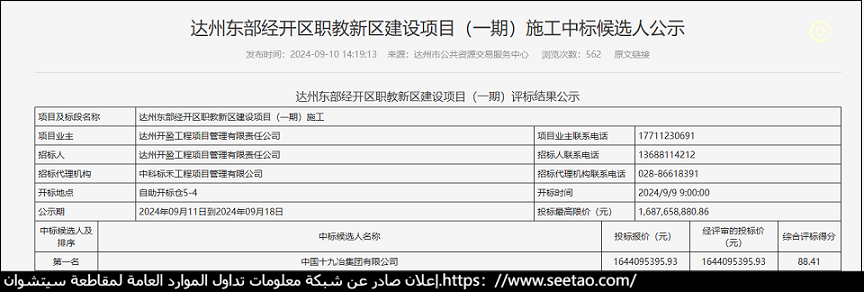 في الآونة الأخيرة ، أصدرت شبكة معلومات تداول الموارد العامة لمقاطعة سيتشوان "إعلان المرشحين الفائزين لبناء مشروع بناء منطقة جديدة للتعليم المهني (المرحلة الأولى) في منطقة التنمية الاقتصادية الشرقية في داتشو" ، وفيما يلي التفاصيل: