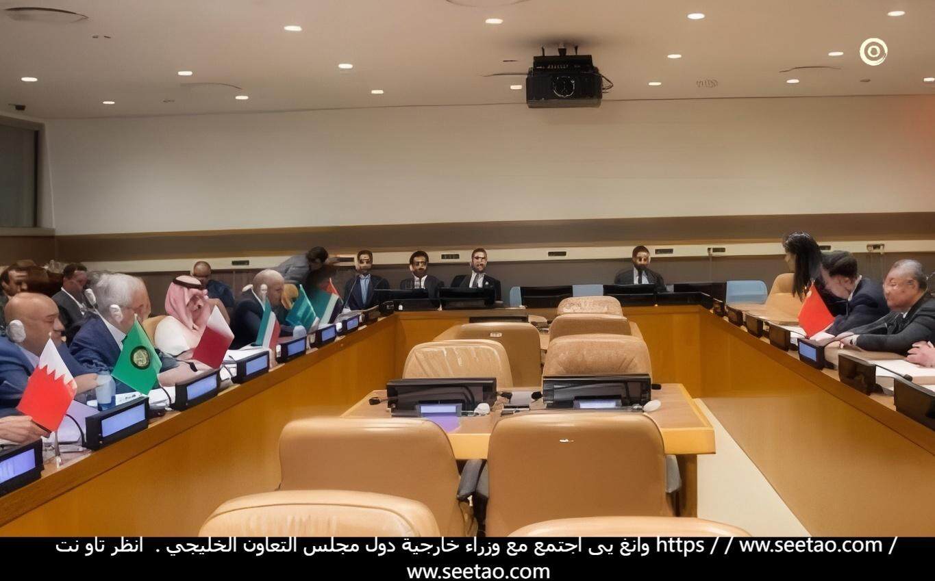 في 27 أيلول / سبتمبر 2024 ، وانغ يى ، عضو المكتب السياسي للجنة المركزية للحزب الشيوعى الصينى ووزير الخارجية ، اجتمع مع وزراء خارجية دول مجلس التعاون الخليجي خلال الدورة 79 للجمعية العامة للأمم المتحدة في نيويورك . وحضر الاجتماع الرئيس الحالي لمجلس وزراء خارجية دول مجلس التعاون الخليجي ، ووزير الدولة للشؤون الخارجية القطري مولاي كي ، والرئيس المناوب المعين ، ووزير خارجية الكويت يحيى ، ووزير الخارجية السعودي فيصل ، ووزير الدولة للإمارات العربية المتحدة خليفة ، ووزير الخارجية البحريني الزيني ، والسفير العماني غير المعين عبد العزيز ، والأمين العام لمجلس التعاون الخليجي أبو ظبي .