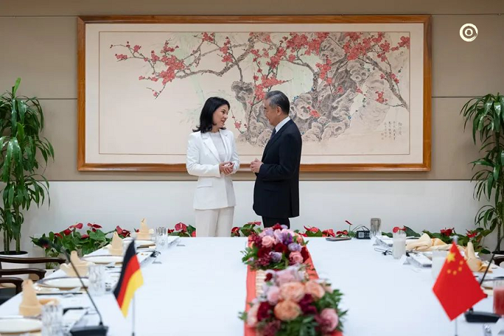 في 24 سبتمبر 2024 ، التقى وزير الخارجية وانغ يي بوزيرة الخارجية الألمانية بيربوك في نيويورك وأجريا تبادلات متعمقة حول العلاقات بين الصين وألمانيا والصين والاتحاد الأوروبي.