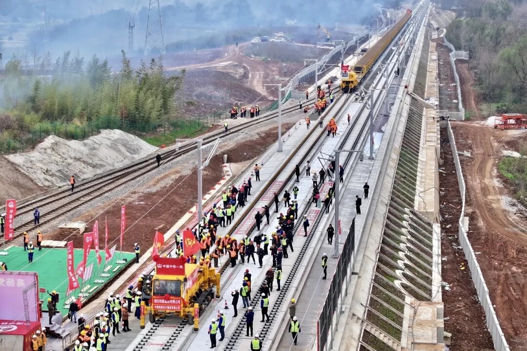 في صباح يوم 15 مارس، تم بناء قاعدة رصف سكك حديدية عالية السرعة في مدينة شيان جينجمين لمدة عامين. وبصفته جرارًا يضع زوجًا من السكك الحديدية الفولاذية بطول 500 متر على سرير بدون مسار صخري، بدأ السكك الحديدية عالية السرعة بقيادة مجموعة سكك هوبي الحديدية في تمهيد الطريق.