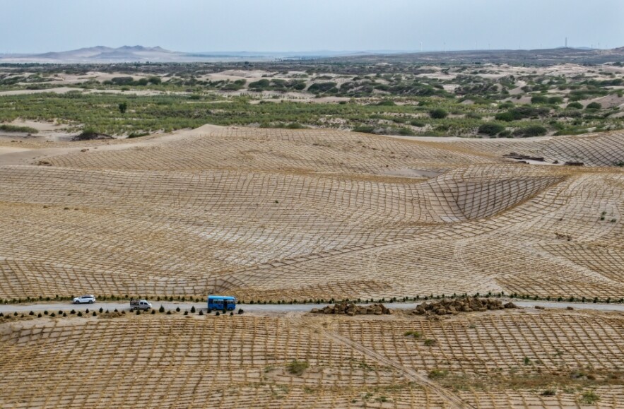 حتى الآن ، فإن الطريق إلى السيطرة على الرمال المشروع نتائج رائعة . من 32 مشروعا ، 28 مشاريع الطرق السريعة عبر الرمال بدأت البناء ، بلغ مجموع الأميال 459.3 كيلومترا . ما تبقى من 4 مشاريع يبلغ طولها 53 كيلومترا كما تم الإعلان عن مناقصة البناء على وشك أن تبدأ . هذه 32 مشروعا استثمار ما مجموعه 480 مليون يوان ، ومن المتوقع أن تؤدي إلى الانتهاء من السيطرة على الرمال 820 مو ، من أجل تحسين البيئة الايكولوجية الإقليمية إلى قوة دافعة قوية .