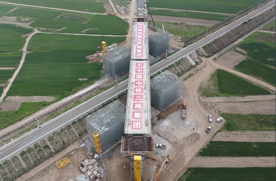 من أجل ضمان كفاءة عالية دفع السكك الحديدية رصف العمل ، وبناء الجانب يستخدم مجموعتين من المسار جرار ، المسار الطويل دفع الجهاز وغيرها من المعدات المتقدمة رصف السكك الحديدية ، لتحقيق خط مزدوج قبل وبعد زرع في وقت واحد ، خط واحد يوميا وضع المسار الأميال يمكن أن تصل إلى 6 كيلومترات ، وفقا للخطة ، سيتم الانتهاء من خط كامل قبل شباط / فبراير 2026 .