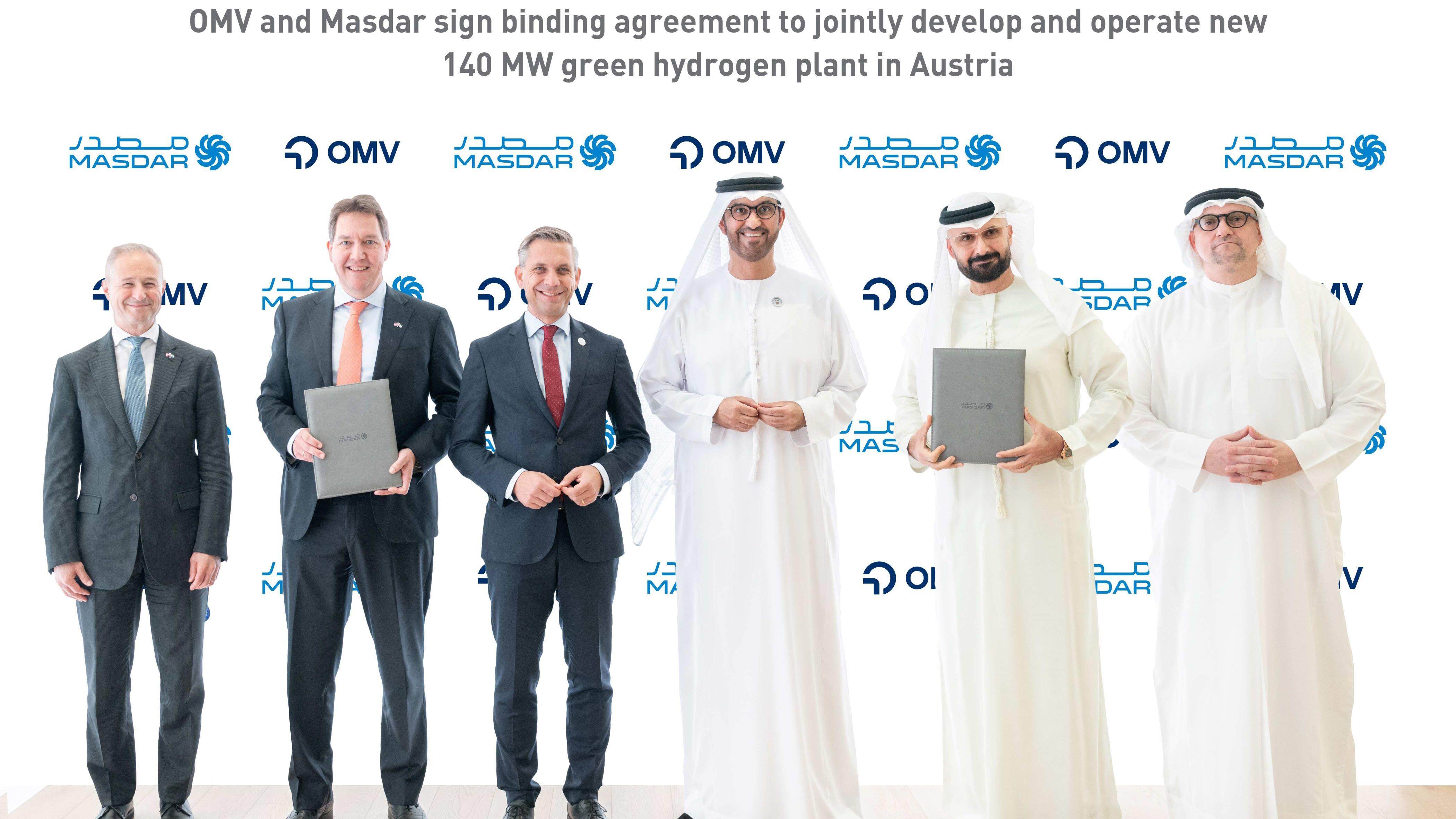أبو ظبي للطاقة في المستقبل شركة مصدر الطاقة النمساوية العملاقة OMV وقعت اتفاقا ملزما لبناء 140 ميغاواط الهيدروجين الأخضر مصنع في النمسا . مرفق ، حوالي 40 كيلومترا جنوب شرق فيينا ، سوف تصبح خامس أكبر مصنع الهيدروجين الأخضر في أوروبا ، خطوة هامة إلى الأمام في أوروبا في مجال الطاقة النظيفة .