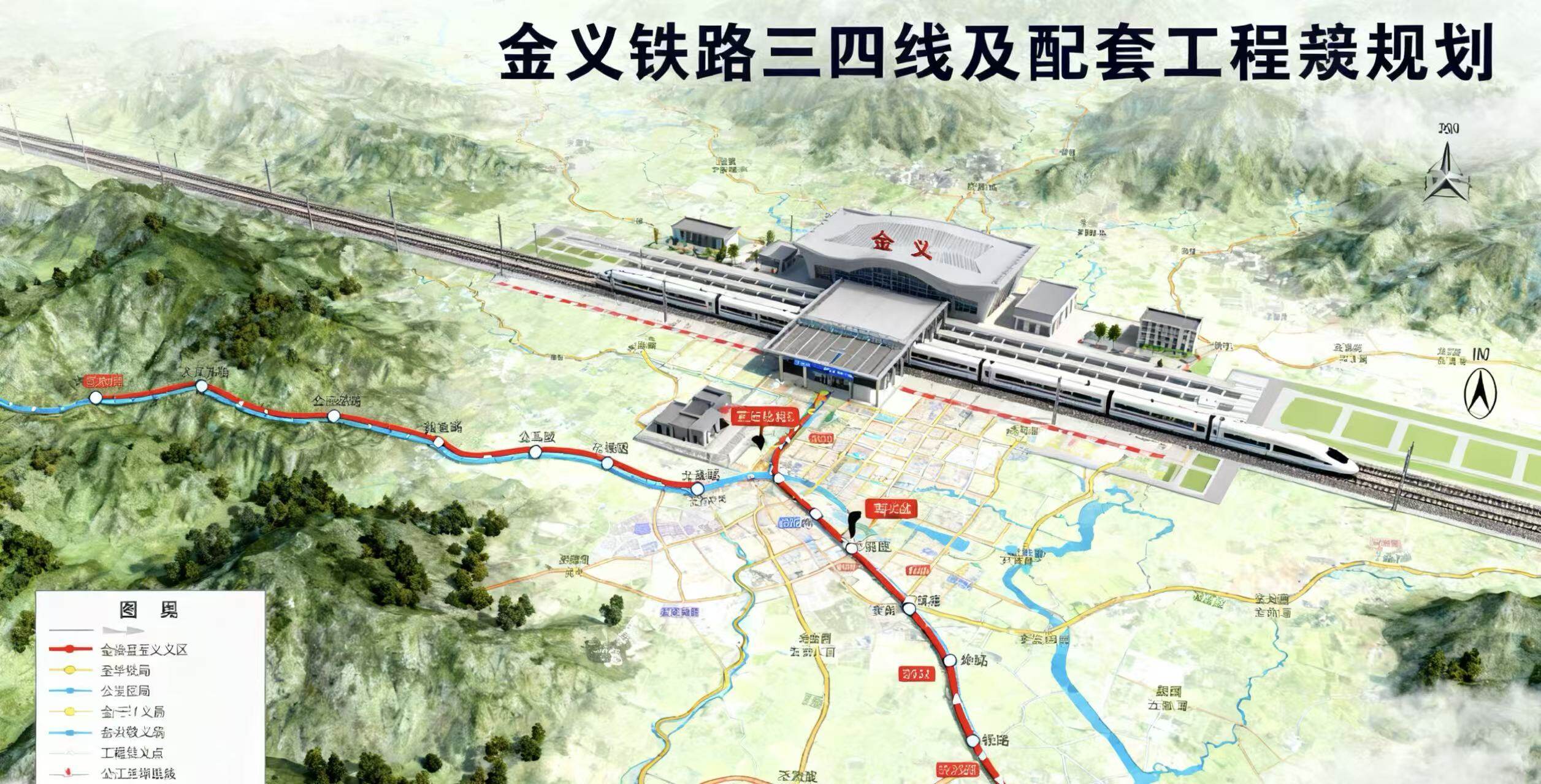 باعتبارها واحدة من أهم مشاريع التوسع في شنغهاي وكونمينغ السكك الحديدية ، جين يى السكك الحديدية خط 3 و 4 و دعم المشاريع في موقع متميز . المشروع الرئيسي هو حوالي 45 كيلومترا في الطول ، تصميم سرعة 200 كيلومترا في الساعة ، بما في ذلك بناء السكك الحديدية المزدوجة الجديدة ، وإعادة بناء محطة القائمة ، بالإضافة إلى دعم نظام الإشارات والاتصالات ومرافق الطاقة ، وفي الوقت نفسه ، في وقت واحد على طول الخط الأخضر ، وحماية البيئة ، وغيرها من المشاريع الفرعية . بعد الانتهاء من المشروع ، فإنه سيتم كسر عنق الزجاجة تقييد النقل بالسكك الحديدية من جينهوا إلى ييوو ، شنغهاي وكونمينغ السكك الحديدية من المتوقع أن تزيد من قدرة الشحن بنسبة 60 في المائة ، من الواضح أن تحسين كفاءة قطارات الركاب ، والتي يمكن أن تخفف من الضغط على النقل بالسكك الحديدية الإقليمية للركاب والبضائع .