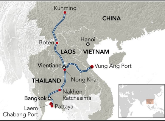 ومن المتوقع أيضا أن تكون متصلا مع شبكة السكك الحديدية في تايلاند وكمبوديا وغيرها من البلدان في المستقبل ، وفي نهاية المطاف تعزيز تشكيل نظام السكك الحديدية في شبه جزيرة الهند الصينية ككل ، إلى حد كبير تحسين مستوى الترابط والتكامل الإقليمي .