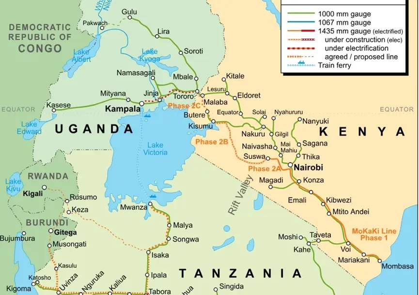 في الصباح الباكر في ميناء مومباسا ، كينيا ، قطار محملة بالبضائع تسير على طول خط السكك الحديدية القياسية في نيروبي ، التي بنيت من قبل جسر الطريق السريع الصيني أصبح الشريان الرئيسي في شرق أفريقيا . على الجانب الآخر من الحدود في أوغندا ، هناك مفاوضات مكثفة بشأن تكنولوجيا السكك الحديدية لرسو السفن . في الآونة الأخيرة ، وأوغندا وكينيا قد توصلت أخيرا إلى اتفاق بشأن المعايير التقنية الرئيسية ومواقف السياسة العامة من أجل بناء خط السكك الحديدية بين مومباسا وكمبالا ، مما يمهد الطريق أمام ممر السكك الحديدية بين بلدان شرق أفريقيا .