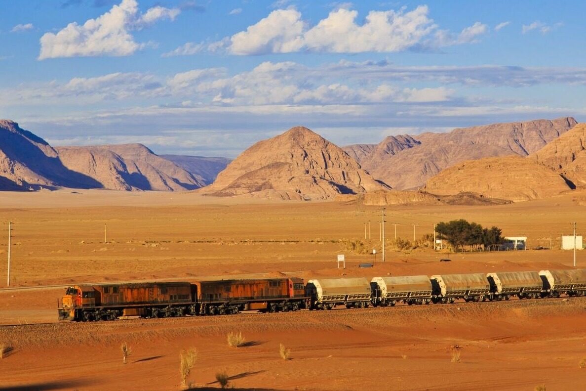 تحت صحراء نفد الشاسعة ، شريان فولاذي جديد ، مما يجعل من المملكة العربية السعودية الذهب الأبيض والفوسفات أكثر كفاءة في السوق العالمية .