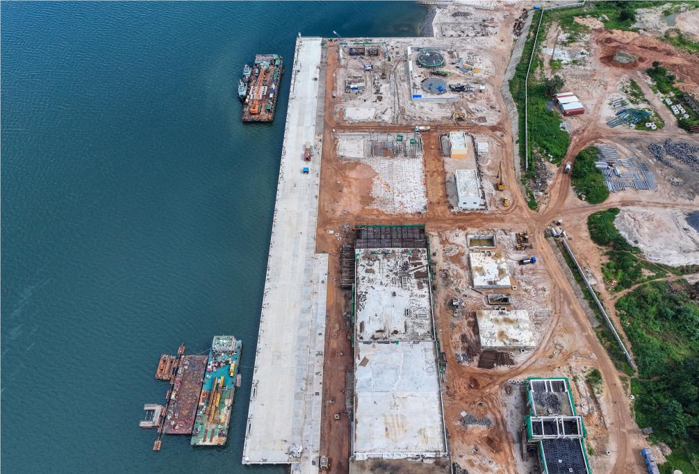 في موقع البناء من كيلوفا ميناء صيد الأسماك في منطقة ليندي في جنوب شرق تنزانيا ، 315 مترا رصيف يمتد إلى البحر مثل الصلب الأسلحة . هذا هو على وشك أن تشهد تنمية اقتصادية كبيرة في تنزانيا المحيط الأزرق ، الذي هو بناء ميناء الصيد الحديثة من الصين ميناء الهندسة المحدودة .