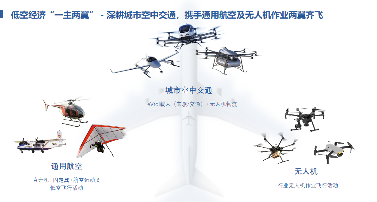شنغهاي لا تبدأ من الصفر . الاعتماد على c919 الطائرات وغيرها من المشاريع الوطنية التي تراكمت لديها هندسة الطيران ، والالكترونيات والتكنولوجيا المواهب وسلسلة التوريد ، شنغهاي لديها قاعدة صناعية صلبة . في الوقت الحاضر ، المدينة فتحت ما مجموعه 45 خطوط النقل والإمداد ، 3 خطوط التوزيع في المناطق الحضرية ، 14 خطوط الركاب و 4 طرق لمشاهدة معالم المدينة ، بما في ذلك النقل الطازج ، والتوزيع الطبي ، والسياحة الحضرية وغيرها من المجالات .