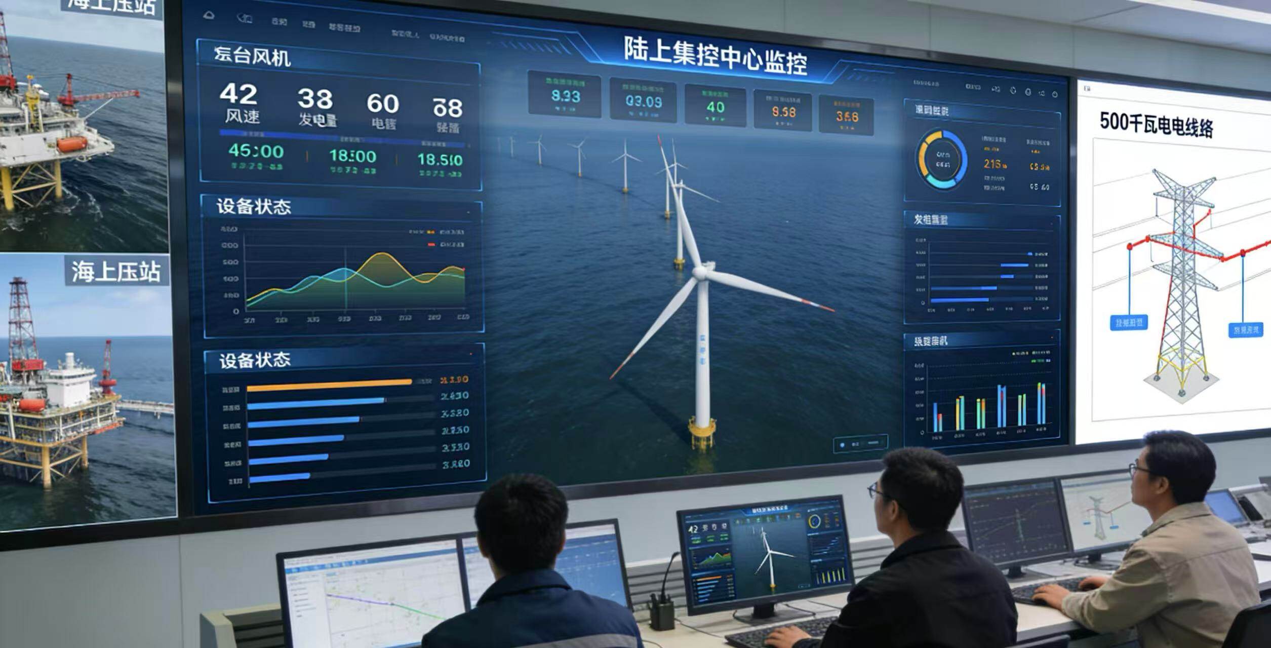 تطوير طاقة الرياح البحرية بعيدة المدى ، ونقل الطاقة هو المفتاح . هذا المشروع يهدف إلى خلق " البحر - الأرض - شبكة " الثالوث انتقال البرنامج للتغلب على مسافة طويلة وعميقة انتقال الصعوبات التقنية . في نهاية المطاف ، 220 كيلوفولت من محطة تقوية في البحر هو سحب ما يصل إلى جمع الطاقة الكهربائية من 42 الاعصار . اثنين من الكابلات تحت سطح البحر 220 كيلوفولت كسر الأمواج ، حلقة واحدة أكثر من 90 كيلومترا في الطول ، لتحقيق الاستقرار في نقل الطاقة الكهربائية إلى الأرض .