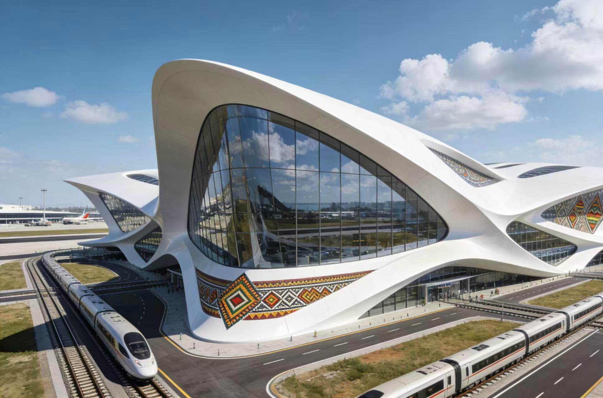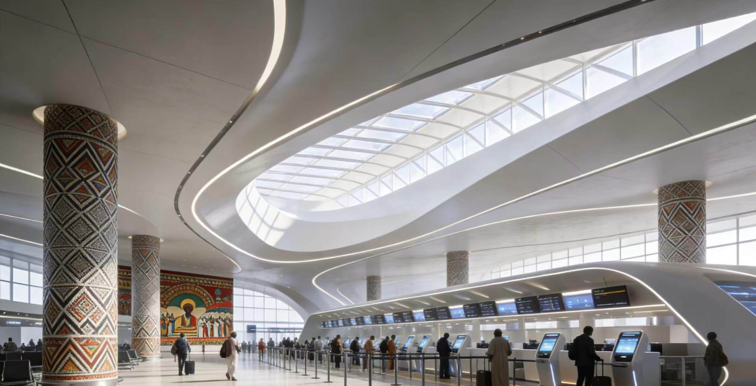 طموح مطار بيشوف الدولي هو أكثر بكثير من مجرد بناء مطار ، ولكن صعود " مدينة الطيران " . هذا المشروع تم تصميمه من قبل زها حديد شركة الهندسة المعمارية جنبا إلى جنب مع دار الحنداسة ، يدمج الرموز الثقافية الإثيوبية في تبسيط اللغة المعمارية ، المحطة الجوية ليست فقط محور توزيع الركاب ، ولكن أيضا يدمج فندق خمس نجوم ، الراقية مركز التسوق ، مكتب تجاري ، وغيرها من أشكال متعددة من الأعمال التجارية ، وبناء " وقفة واحدة " الطيران الاقتصادي والبيئة . " التكامل بين البر والجو " التخطيط هو اللمسات الأخيرة : 38 كيلومترا ، تصميم سرعة 200 كيلومتر في الساعة من السكك الحديدية عالية السرعة ، مطار العاصمة أديس أبابا ترتبط ارتباطا وثيقا ، مع شبكة الطرق السريعة الجديدة ، مستقبل المسافرين من المناطق الحضرية إلى المطار ، فقط نصف ساعة بالسيارة ، حقا تحقيق " المدينة والميدان " سلس .
