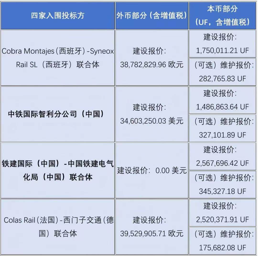 في 13 يناير 2026، أعلنت شركة السكك الحديدية الوطنية التشيلية (EFE) رسميًا أن فرع شركة السكك الحديدية الصينية الدولية في تشيلي قد فاز بناءً ناجح بمشروعين رئيسيين لنظام الطاقة والجر لسكك الحديد بين المدن: ألاميدا-ميليبيا (TAM) وسانتياغو-باتوكو (TSB)، حيث بلغ إجمالي قيمة العقد 1.4869 مليون وحدة تطوير تشيلية (خدمات محلية) و34.6033 مليون دولار أمريكي (معدات مستوردة، جميعها شاملة الضرائب)، مع مدة إجمالية للمشروع تبلغ 1825 يومًا. يمثل هذا الفوز اعترافًا بتقنية السكك الحديدية الصينية في الأسواق عالية الجودة في أمريكا اللاتينية، بينما خسر اتحاد شركة السكك الحديدية الصينية الدولية وشركة الصين للسكك الحديدية المكهربة بالأسف في المنافسة الشرسة.