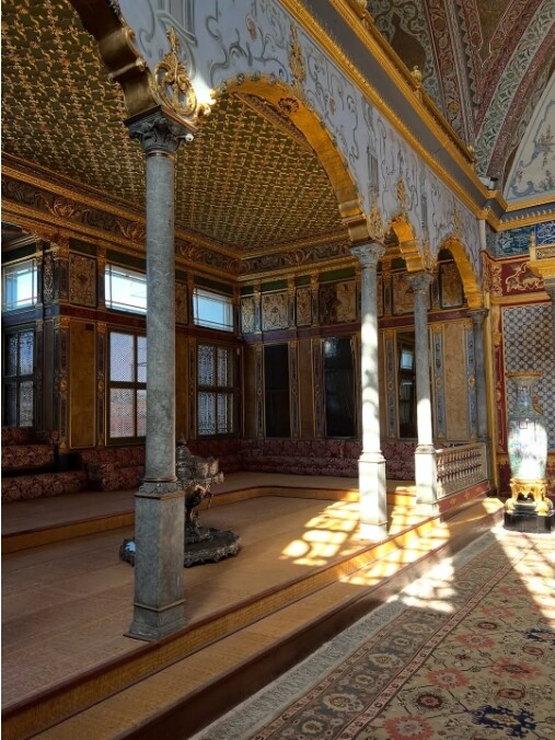 قصر الإمبراطورية العثمانية الذي استمر 400 عام، يحتوي في قصر الكنوز على تاج السلطان المزخرف بـ3000 قطعة من الألماس، وعندما يلامسها ضوء الشمس، تشع ألوان قوس قزح.