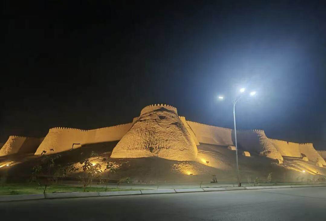أسوار المدينة بنيت من الطين الخام والطوب ، حوالي 2.5 كيلومتر في الطول ، وقد تم ترميمها على نطاق واسع في الحقبة السوفياتية .