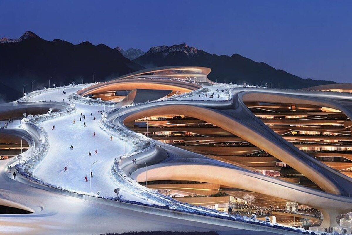 في المناطق النائية من الرمال الصفراء ، 500 مليار دولار تروجينا منتجع للتزلج على الجليد على وشك الارتفاع ، ليس فقط استضافة الألعاب الآسيوية الشتوية في عام 2029 ، ولكن أيضا رمزا المملكة النفطية إلى السياحة المستدامة في المستقبل الاقتصادي الطموح المذهل .