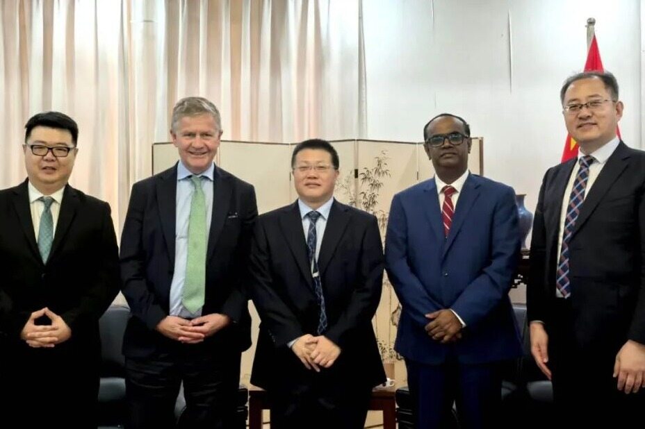 وفي 10 شباط / فبراير ، التقى السفير ياو ون في السفارة مع اريك سولهايم ، نائب الأمين العام السابق للأمم المتحدة والمدير التنفيذي لبرنامج الأمم المتحدة للبيئة ونائب رئيس الاتحاد الدولي للتنمية الخضراء على طول الطريق .