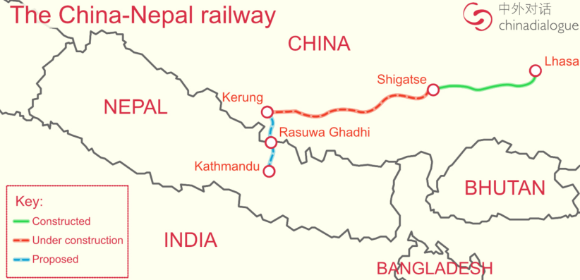 بالنسبة لنيبال ، تقرير حزيران / يونيه بشأن النقل الوطني . في الوقت الحاضر ، 87 ٪ من نيبال ' ق التجارة الخارجية يجب أن تمر عبر الهند ، رهنا الجغرافيا السياسية . بعد الانتهاء من السكك الحديدية الصينية النيبالية ، وسوف يستغرق سوى 15 يوما للوصول إلى كاتماندو مباشرة من ميناء شيغاتسي الدولي البري في التبت ، أكثر من 30 يوما أقصر من الطريق البحري عبر الهند . هذا ليس فقط تسريع حركة المرور ، ولكن أيضا سيادة الدولة " فضفاضة " .