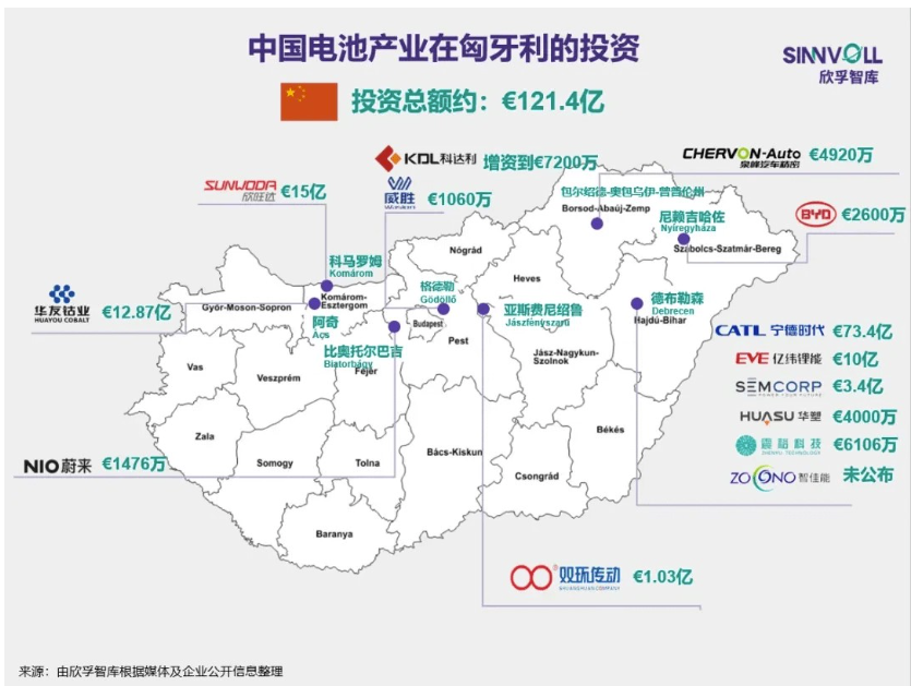 نينغده عصر 7.34 مليار يورو في دبرسن المجر أكبر مشروع الاستثمار الأجنبي المباشر في التاريخ ؛ بي واي دي تعلن عن بناء أول قاعدة لانتاج سيارات الركاب في أوروبا في سيجد . لينوفو ، وي لاي ، هواوي ، وغيرها من الشركات الصينية قد انخفض . بالمقارنة مع ارتفاع تكاليف اليد العاملة وأسعار الطاقة في ألمانيا وفرنسا ، هنغاريا لديها أعلى سعر العمل والمهندسين الجودة ، ويمكن الحصول على إمدادات الطاقة الرخيصة نسبيا من روسيا وأوكرانيا بعد الصراع .