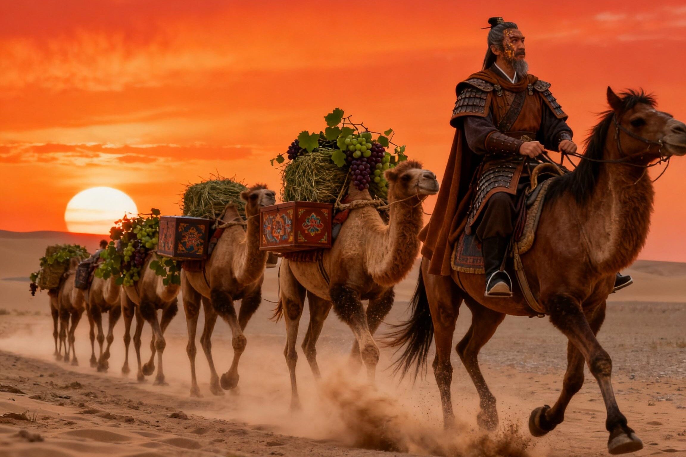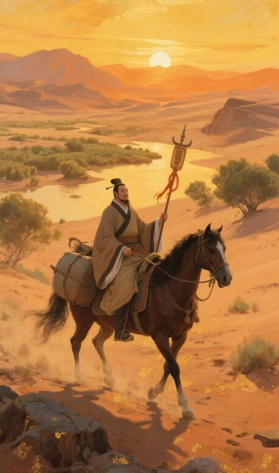 تشانغ ➔ Didao ➔ ممر قانسو ( القبض ) ➔ تشي شي / Yanqi Qiuzi / شول ➔ دا وان ( Guishan المدينة ) ➔ دا يوي ( Lanshi المدينة ) / كانغ جو ( Bettian المدينة ) ➔ شا تشي / يوتيان / جينغ جي / qiemo ➔ ( تشيانغ تشونغ ) .Editor/Cheng Liting