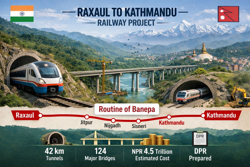 وزارة السكك الحديدية الهندية في 20 آذار / مارس 2026 أكد رسميا الانتهاء من خط الاختيار النهائي مسح مفصل تقرير المشروع . ووفقا للخطة ، كل خط يحتاج إلى بناء حوالي 42 كيلومترا من الأنفاق و 124 جسرا كبيرا . على الرغم من أن لا تنطوي على جبال الهيمالايا ريدج الرئيسية ، ولكن التضاريس الجبلية لا تزال بحاجة إلى دعم كبير من الجسور والأنفاق . المشروع ، الذي بدأ في عام 2018 البيان المشترك بين البلدين ، وقد أنجزت جميع الأعمال التحضيرية على المستوى التقني .