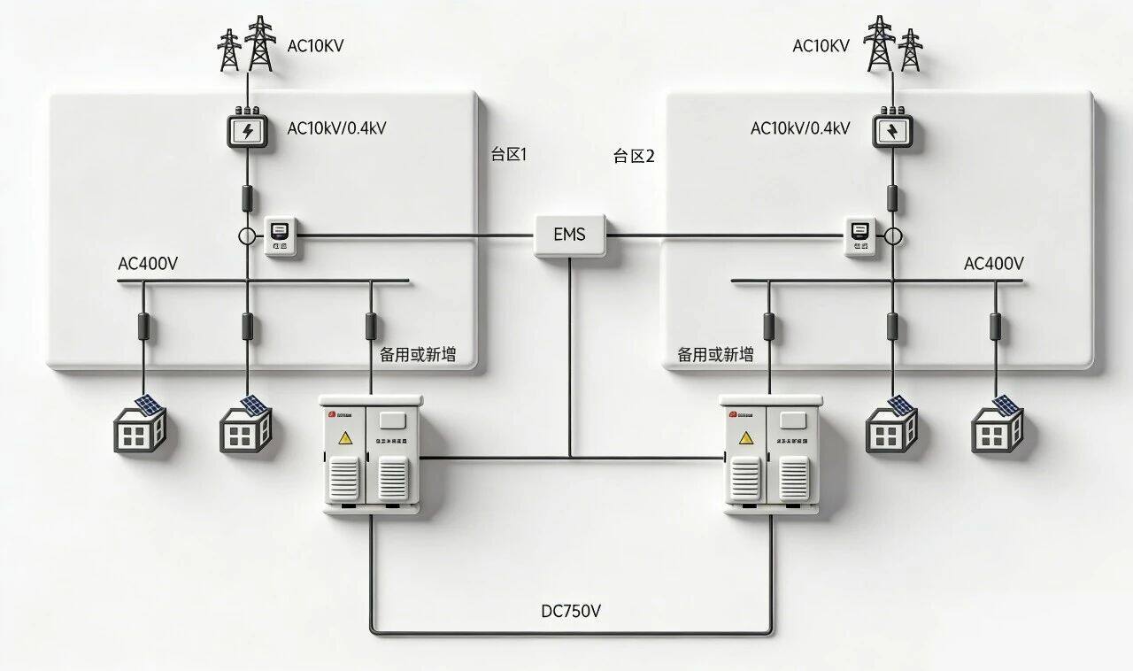 نظام تخزين الطاقة في منطقة المحطة تعتمد على ثلاث مراحل أربع ذراع الجسر الطوبولوجيا هيكل أجهزة الكمبيوتر ، والتي يمكن تحقيق ثلاث مراحل الانتاج المستقل وتلبية متطلبات 100 ٪ من ثلاث مراحل عدم الاتزان مع الحمل .