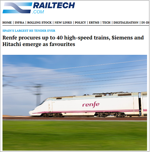 في الآونة الأخيرة ، renfe شراء 30 نوع جديد من القطارات فائقة السرعة في محاولة للحصول على موافقة مجلس إدارة الشركة بعد بدء رسميا . وفي 1 نيسان / أبريل 2026 ، نُشر إعلان المناقصة في وقت واحد في موقع بوابة المشتريات العامة الإسبانية وفي الجريدة الرسمية للاتحاد الأوروبي ، حيث لا تمثل العروض سوى 30 في المائة من الدرجات ، وحُدد الموعد النهائي لتقديم العطاءات في 9 حزيران / يونيه 2026 .