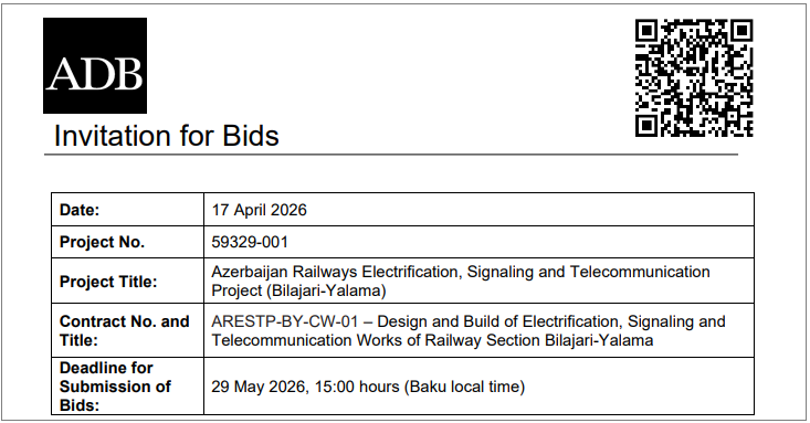وقدم مصرف التنمية الآسيوي نحو 325 مليون دولار من دولارات الولايات المتحدة في شكل قروض لدعم المشروع ، يملكها شركة السكك الحديدية الأذربيجانية . المناقصة مفتوحة لجميع الشركات المؤهلة من الدول الأعضاء في بنك التنمية الآسيوي في إطار عملية المغلف المزدوج ، مع الموعد النهائي لتقديم العطاءات في 29 أيار / مايو 2026 . ويشمل المشروع كامل عملية تصميم وبناء وتركيب كهربة ، إشارة نظام الاتصالات ، ومن المتوقع أن تكون فترة البناء 42 شهرا .