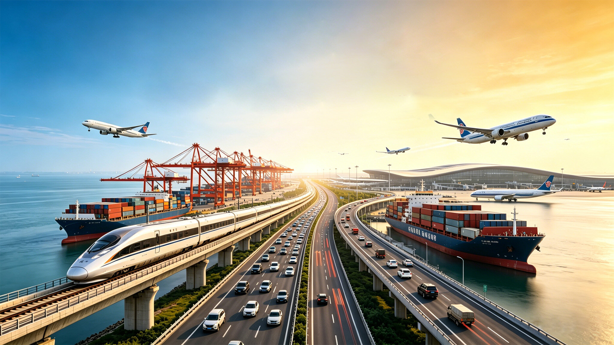 نقل الركاب في خط الشبكة ، في حين أن الشحن هو أيضا تسريع الوصول إلى الشبكة . في جميع أنحاء البلاد ، النقل المتعدد الوسائط هو تسريع تشغيل : الحديد المنصهر ، والسكك الحديدية العامة ، جيانغ هاى ، الهواء والأرض والنقل المتعدد الوسائط تسير جنبا إلى جنب . تيانجين جنوب ميناء ، ميناء تايتشو بمقاطعة جيانغسو ، ميناء تونغلينغ بمقاطعة انهوى ، وغيرها من خطوط السكك الحديدية الخاصة بتكثيف البناء من أجل فتح آخر كيلومتر من النقل المتعدد الوسائط .