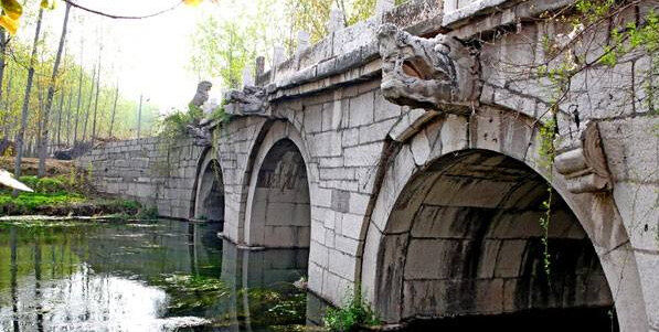 تتدفق مياه الينابيع من غابة الينابيع إلى نهر سي تحت جسر بيان. جسر بيان على شكل قوس ، يتجه من الشرق إلى الغرب ، وهو مبني بأقواس من ثلاث حفر. يبلغ طول الجسر 24 متراً وعرضه 6 أمتار ، ويبلغ طول الجسر 35 متراً في كل طرف. يبلغ ارتفاع الفتحة الوسطى للجسر الحجري المقوس بثلاث فتحات حوالي 5 أمتار ، ويبلغ ارتفاع الثقوب الصغيرة الشرقية والغربية حوالي 4 أمتار ، وامتداد الحفرة الوسطى 4.5 متر ، وسمك القدم القوسية 0.5 متر ، وسمك القبو 0.4 متر. نقش على الجزء العلوي من قسيمة القوس ذي الفتحة الوسطى "إعادة بناء الجسر الحجري في مدينة بيانكياو ، بدءًا من 1 أغسطس في العام الحادي والعشرين من (جين) دادينغ (1181) حتى 8 أبريل ، 22 أبريل. تذكر."