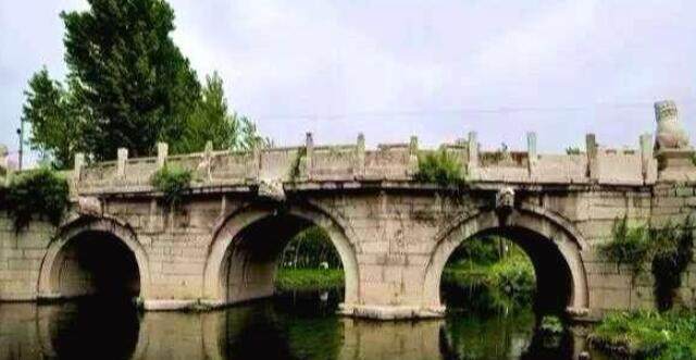 وفقًا للأسطورة ، عندما كان تشو وهان يتقاتلان ، لجأ هان شين إلى تحت الجسر لرد الجميل له وأعيد بناؤه في جسر حجري ثلاثي الفتحات. في بداية عهد أسرة تانغ ، كافح لي شيمين للعودة إلى الجسر. وبعد الاستماع إلى التلميحات الإنسانية ، طلب من وي تشيجونغ (كلمة Jingde) إعادة بناء الجسر. ولا يزال القبو الموجود أسفل الجسر محفورًا بعبارة "Jing De Supervision". محرف.