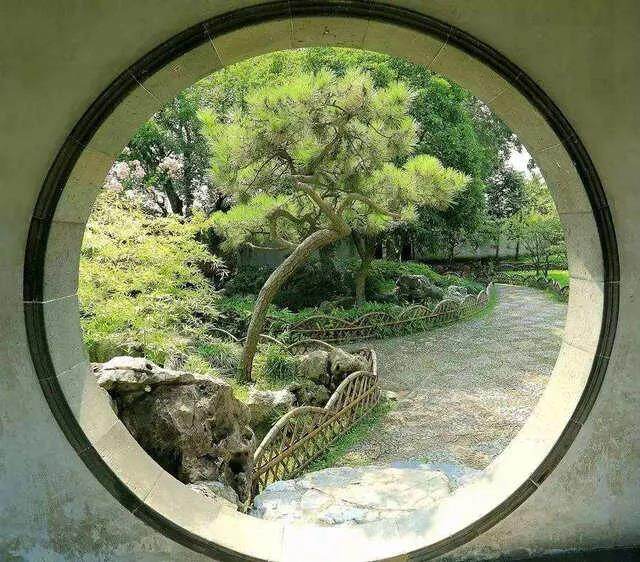 غالبًا ما تشتمل الأبواب أو النوافذ أو الثقوب أو فروع الشجرة في المباني في الحديقة على مناظر طبيعية جميلة للجبال والأنهار البعيدة أو المناظر الطبيعية الإنسانية. هذا هو المشهد المؤطر.
