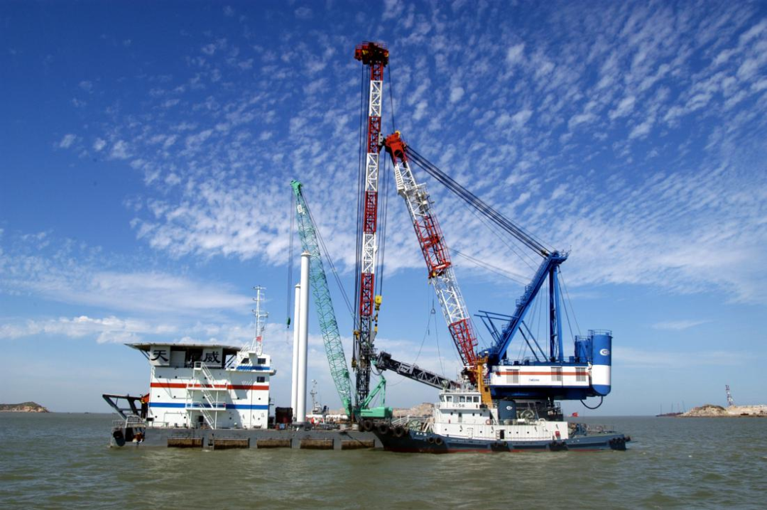 في مارس 2003 ، دخل المشروع أكثر فتراته ازدحامًا. حققت سفينتا دق الخوازيق رقم 8 ورقم 15 نتائج جيدة على التوالي ، ومن بينها ، قادت سفينة دق الخوازيق رقم 15 18 ركيزة في 22 ساعة ، مسجلة رقمًا قياسيًا جديدًا في سرعة مشاريع الركائز في نفس الصناعة. في يونيو ويوليو 2003 ، حقق المشروع غرق أكثر من 600 ركيزة ، مسجلاً رقماً قياسياً جديداً لغرق الركام في البحر. كما استثمر مكتب الملاحة الأول في الرافعة الكاملة الدوران "Tianwei" ، والمعروفة باسم "Water Giant" في ذلك الوقت ، لسد فجوة السفن الهندسية الصينية الكبيرة متعددة الأغراض وإثبات قوتها الكبيرة في البناء جسر بحر الصين الشرقي. نظرًا للكمية الكبيرة من الخرسانة المصبوبة في المكان ، وضع مكتب الملاحة الأول أكبر وعاء خلط خرسانة في البلاد "Mixing No. 5" في البناء في الموقع ، مسجلاً رقماً قياسياً جديداً للإنتاج السنوي للخرسانة البحرية لتتجاوز 65000 متر مكعب.