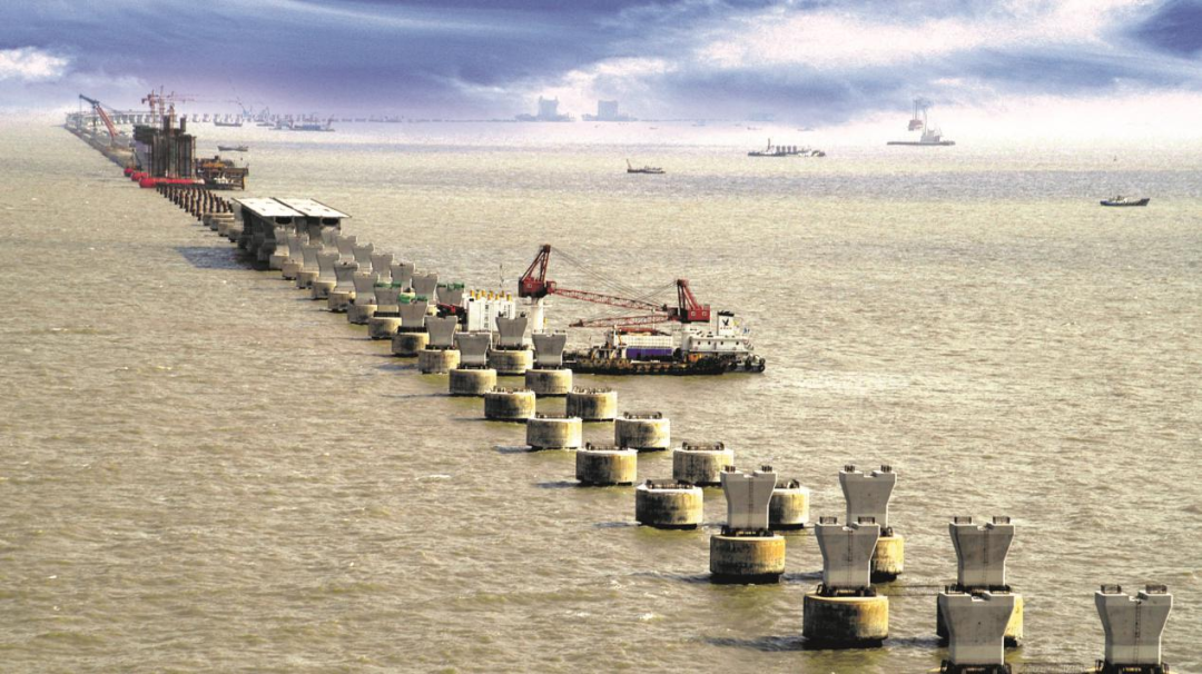 جسر البحر والسماء يكثفان جوهر التكنولوجيا. جسر Donghai هو جسر طويل يقطع البحر في شنغهاي ويعبر المياه الشمالية لخليج Hangzhou إلى ميناء Yangshan Deepwater. مع المفهوم الإبداعي لـ "East China Sea Changhong" ، فهو يشبه قوس قزح مشرق في بحر الصين الشرقي. بطول إجمالي يبلغ 32.5 كيلومترًا ، يعتمد بناء قياسي من ستة مسارات في اتجاهين وسرعة تصميم تبلغ 80 كيلومترًا في الساعة.هذه هي المرة الأولى التي يقترح فيها الجسر 100 عام فترة أساسية للتصميم في الصين.