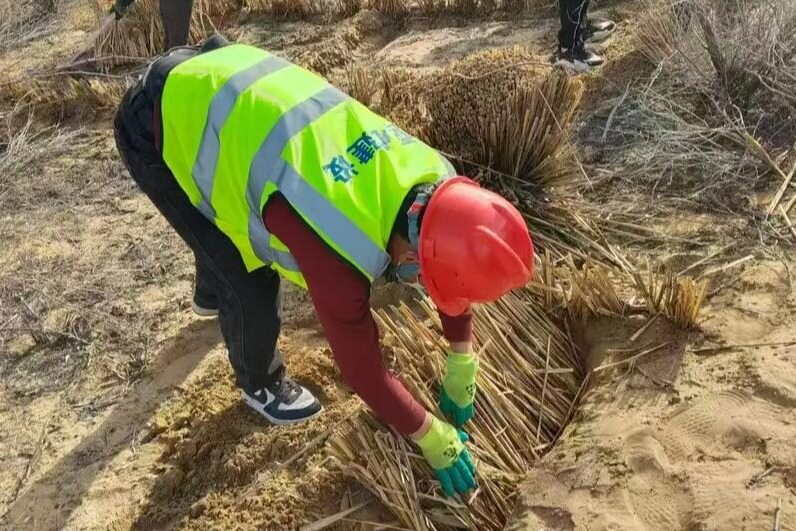 بدء بناء مشروع تثبيت الرمال الحدودي في منطقة شينجيانغ مينفنغ يوتيان